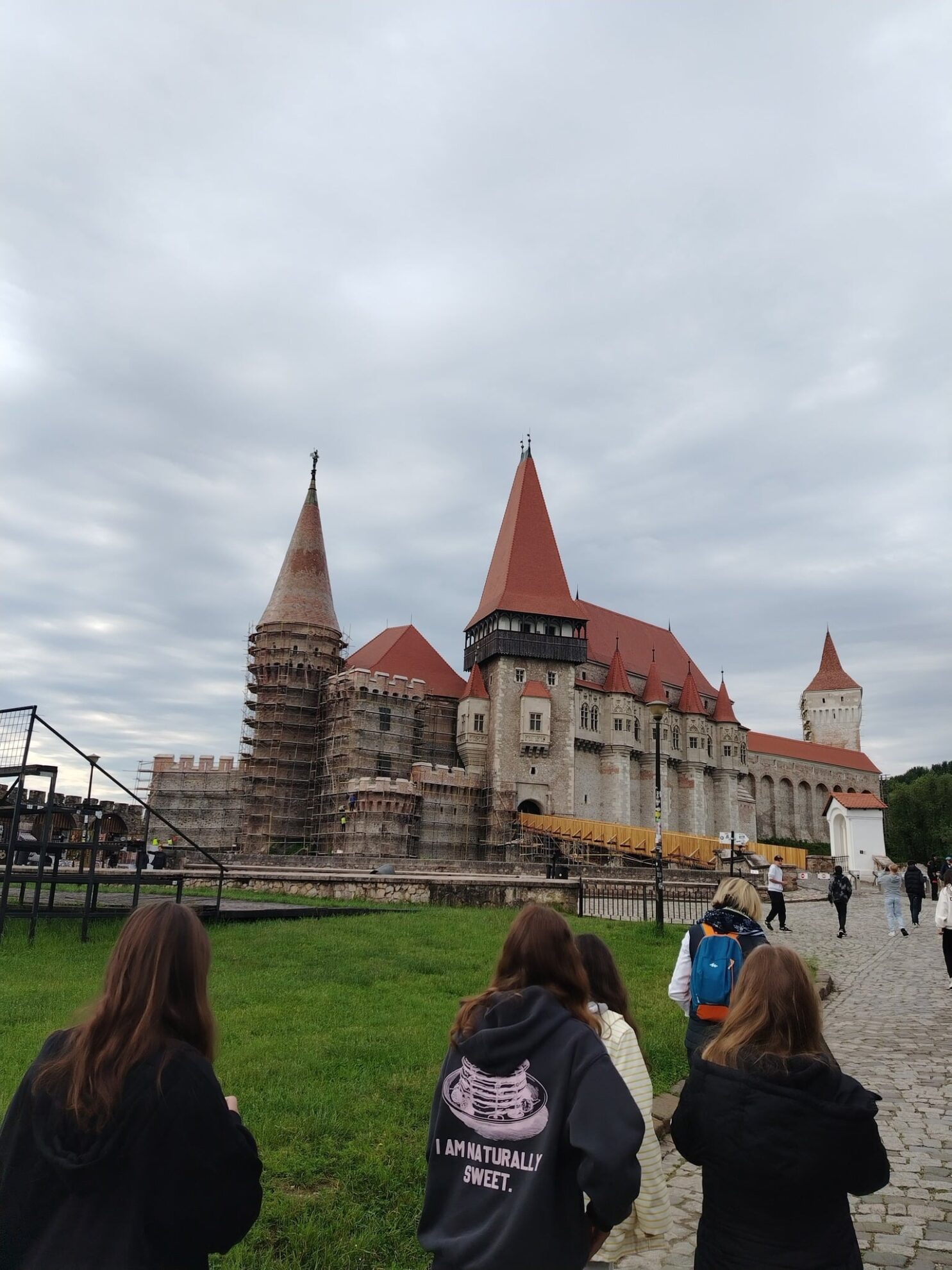 Vajdahunyad gyönyörű volt, bár épp felújítás alatt van a vár külső homlokzata. A vár udvara, boltíves folyosói, színes mozaik ablakai, kiállított páncéljai elvarázsoltak minket, de legizgalmasabbnak a kínzókamrát találtuk, és hálásak voltunk, hogy modern korban élhetünk.